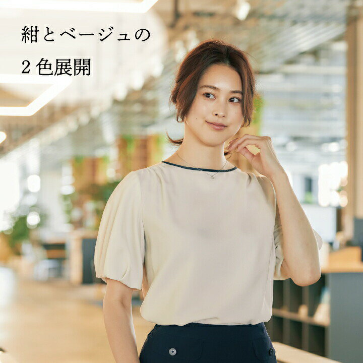 プルオーバー インナー カットソー レディース 女性用トップス フォーマル きれい目 きれいめ 可愛い かわいい 事務服 ストレッチ 撥水 防汚 アルファピア チクマ 事務服 会社 社員 制服 オフィス ユニフォーム YT7724-1 YT7724-3 ユキトリイ ベージュ ネイビー