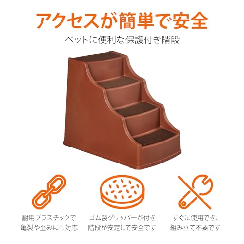4ステップ・ココア 62×42.01×51cm 12044-A-CO・・Color:ココアStyle:4ステップ・犬や猫が家具や車に乗り降りするのを助ける4段のペット用階段・小型、身体が不自由、怪我をした、高齢のペットなどの昇降に。・ステップを安定させる底部ゴム製グリッパー・ひび割れや反りに強い丈夫で頑丈なプラスチック製・組み立て不要Amazonベーシックは、お客様に高品質の商品を低価格でお届けすることを目的とした、Amazonグループが全世界で展開するブランドです。 ご購入後、1年間で日本国内を利用頂けます。(合同会社)
