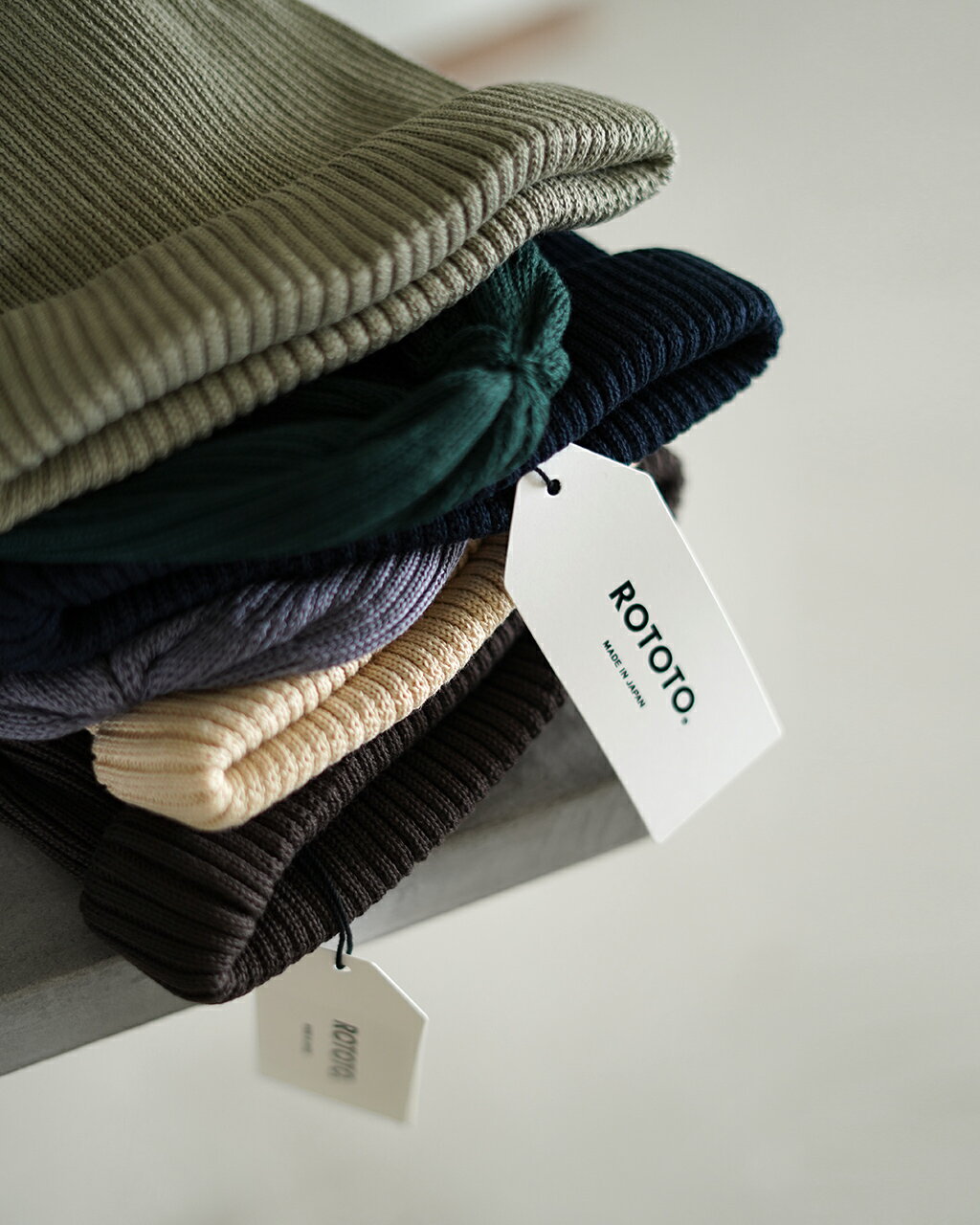 ロトト ROTOTO コットン ロールアップ ビーニー COTTON ROLL UP BEANIE 浅め ニット帽 ニットキャップ リブ 綿 無地 伸縮性 日本製 R5021 0911 xp10