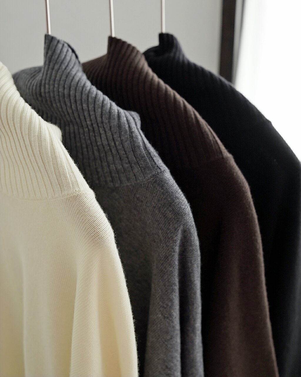 サイド開きの個性派ニット mizuiro ind / ミズイロインド「 poncho like pullover 」 【デザイン】秋冬シーズンの定番として毎年人気を集めるケープニットです。サイドが開いたアシンメトリーなデザイン。シャツやカットソーとのレイヤードもしやすく、アウターもすっきり羽織れます。首元まで温かく包むボトルネックと、ウール混の軽やかで温かみのあるニット素材が特徴。シンプルながらも動きのあるドレープシルエットがモード感を演出し、通勤やお出かけなど幅広いシーンで活躍します。手洗い可能で、日常の着こなしにも便利な一枚。ミズイロインドらしい柔らかく上品な雰囲気が感じられます。 #ケープニット #ポンチョ風 #プルオーバー #アシンメトリー #ボトルネック #ウール混 #秋冬ニット #レイヤード #手洗い可 #ライトゲージ #ドレープシルエット 上質なウール混のブラックニットが主役。ゆるやかなシルエットが生む抜け感に、プリーツスカートの縦ラインがシャープさを添える。シルバーのバッグでクールなアクセントを加え、モノトーンに奥行きを。淡いパープルのタイツが、さりげなく今季らしいニュアンスを引き立てる。 着用アイテムはこちら Bottoms / Shoes ※リンク先には販売前及び品切れの商品を含む場合があります。 ※商品の色味は以下の画像をご参照ください。光の当たり具合やパソコンなどの閲覧環境によって、実際の色味と異なって見える場合がございます。予めご了承ください。 飾らない人 / Simple、自分らしく服を楽しむ人 / Ageing、こだわりのある人 / Personal、そんな人々に向け、シンプルでコーディネートしやすいジャパニーズ・トラッドを提案しています。綺麗で女性らしいシルエットとリラックスした着心地で年齢を問わず幅広い支持を集めています。 mizuiro indのアイテムを見る サイズ 身幅 裄丈 前丈 後丈 f 85cm 59cm 54.5cm 62cm ⇒商品の詳しい採寸方法について BRAND その他のmizuiro indはこちら COUNTRY Made in China SIZE f COLOR off-white(オフホワイト)、d.brown(ダークブラウン)、gray(グレー)、black(ブラック) FABRIC ウール50% アクリル20% ナイロン30% ATTENTION ・こちらのアイテムは素材および染色の特性上、水濡れや摩擦により色落ちや色移りが生じる場合がございます。お洗濯や着用時には他の衣類やバッグ、ソファなどへの色移りにご注意くださいませ。 LAUNDRY >洗濯表示説明はこちら GIFT オリジナルのギフトラッピングも承っております。>ギフトラッピングはこちら