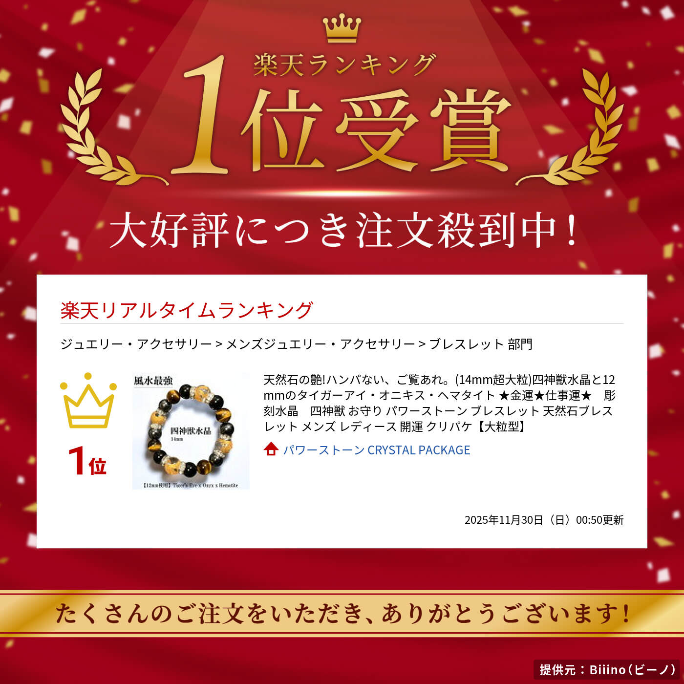 当店は貴方の為の般若心経で開運・災い回避・心願成就の祈祷を行う事ができます。当店だけの強み! 普通なら、お寺や神社に行って1回やってもらいそれで終わりですよね。 でも今回は、現場のリアルな状況を動画・音声でデータ化してお届けしますので、 お客様の「好きな時間、好きな場所」何回でも聴くことができるのです。 今日一日、ご自分への御守りにご使用ください。 また法事、お墓参りの時、仏前でのお供え時などにも効果的です。 ※サンプル動画あります。 気になる方は上の画像をクリック!!当店おすすめ【さざれ水晶】【ラッピング対応】2種類のご用意があります男性が1つ選ぶなら【風水最強】必要な運気がすべて入っています【商品説明】 風水を取り入れ、四神獣水晶(パワーストーン)を用いた金運・仕事運ブレスレットです。 デザイン・意味・色合い配置方法など特にメンズに、バランス良く必要な運気上昇がすべて センス抜群に整っています。 さらにこれは「風水」を用いたブレスレットになっていて簡単に説明すると東西南北に守り神がいてその守り神を再現することにより「麒麟」黄龍ともいいますね、 この「麒麟」が召喚され守り神と共に持ち主、つまりお客様を強いエネルギーで成功へ引っ張っていくという云い伝えがあり、各地で大切にされているのです。 ※玄武(健康運)・青龍(仕事運)・孔雀(家庭運)・白虎(金運) 好きな守り神を好きなように選択するのも良いでしょう。男性がつけるサイズ感がバッチリ!四神獣水晶14mmを使用【タイガーアイ12mm】金運・仕事運の上昇 ・金運や仕事運を高め、願望の達成をサポートしてくれる石として高い人気を誇るタイガーアイ。古くより虎の眼のごとく『すべてを見通す眼』と考えられてきました。その『眼』のパワーは洞察力を高め、物事の本質を見抜き、災厄を退け、成功をもた らすといわれています。【オニキス12mm】 意思の強化、災い回避 ・オニキスは自分自身の中心軸をしっかりと安定させる石で、着実に目標を実現するために地に足を着けた行動をするよう導いてくれる石です。【ヘマタイト12mm】 勝利を呼ぶ信念の天然石 ・持つ人の意思の力を強め、勝負強さを発揮する助けとなります。過酷な運命やトレーニングに負けない精神的強さを養う石でもあり、経営者やスポーツ選手などにオススメの石です。