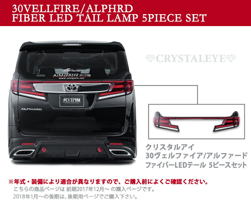 30系 アルファード ヴェルファイア 前期用 クリスタルアイ ファイバーフルLEDテール 5ピースセット テールランプ テールライト シーケンシャルLED レッドクリアー/ブラック 保証書付属 トヨタ ALPHARD VELLFIRE 30 35 エクストララウンジ ハイブリット
