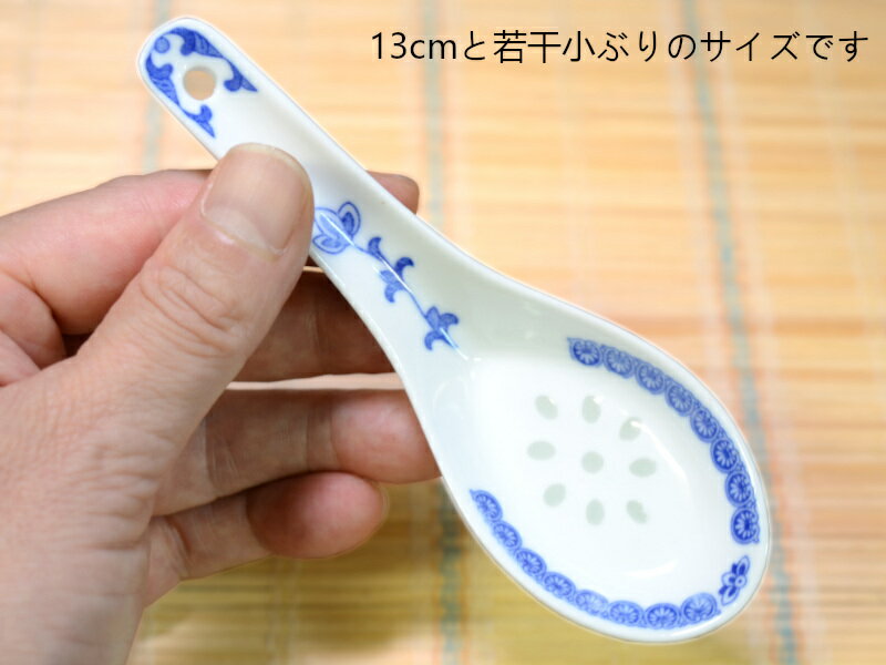 ちょっとお洒落なプリントがされたホタル焼きの陶器製中華レンゲです。中華料理店などで使用されています。少し小ぶりなの中華スィーツの杏仁豆腐などに。もちろんご家庭でもお使い頂けます。 【商品詳細】 ・サイズ 約幅4.4cm×長さ13cm ・重量 約25g ・陶器製 ・原産地 中国 ・1本の価格です 【※ご注意下さい※】 景徳鎮の食器は色や厚みにムラが有ったり、プリントがズレていたり黒子と呼ばれる黒い点がございます。返品や交換はお受けできませんので、予めご了承頂けますようお願い致します。【ちょっとお洒落な中華レンゲ】 ちょっとお洒落なプリントがされたホタル焼きの陶器製中華レンゲです。中華料理店などで使用されています。少し小ぶりなの中華スィーツの杏仁豆腐などに。もちろんご家庭でもお使い頂けます。