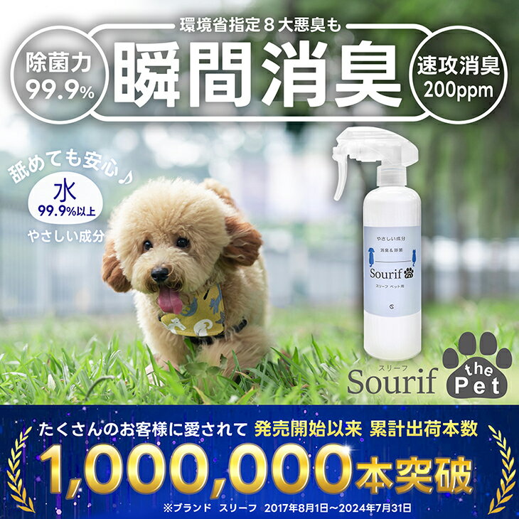 ペット 消臭スプレー スリーフ ペット 300ml 安心 消臭剤 Sourif 犬 猫 消臭 除菌 トイレ 尿 粗相 足 うんち おしっこ 嘔吐 無刺激 安定型次亜塩素酸ナトリウム 200ppm 水の成分 99.9 %
