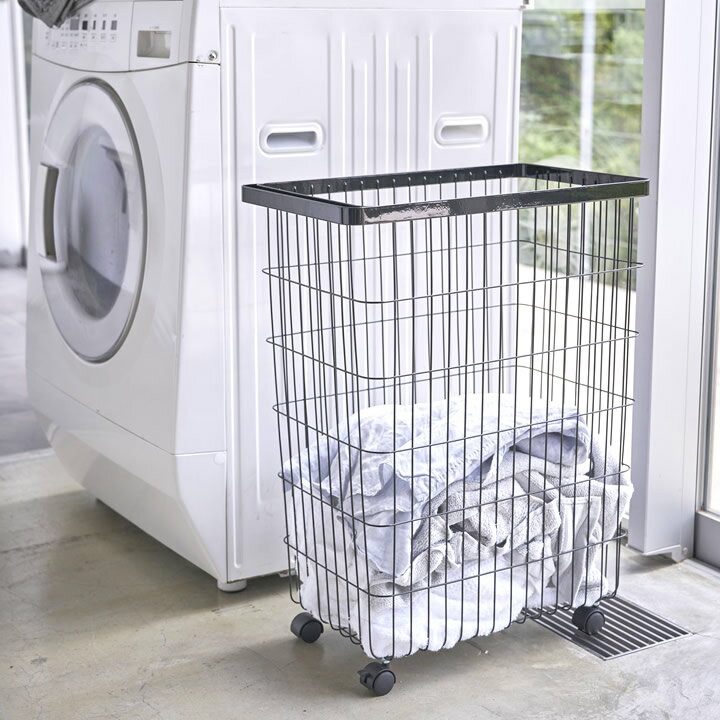 【Size】幅28cm x 奥行46.5cm x 高さ61cm 【素材】 本体:スチール(ユニクロメッキ、粉体塗装) キャスター:ナイロン (ストッパー付き) 【重さ】約1.8kg 【耐荷重】約8kg 【容量】55L 【付属品】スパナ ※組立式 その他のアイテムはこちら。 家族みんなの 洗濯物 が一気に入る 大容量 サイズの ランドリー バスケット ( 洗濯かご )。 大容量 だけど、 洗濯機 の横に スッキリ収まる スリム サイズ 。 キャスター付き なので 洗濯物 がたくさん入っていても 物干し場へラクラク移動可能。 丈夫で長く使える スチール製 。 ワイヤーフレームなので 湿気やニオイがこもらず 視覚的にも圧迫感を感じさせない 機能だけでなくデザインにもこだわった ランドリー バスケット ( 洗濯かご )です。
