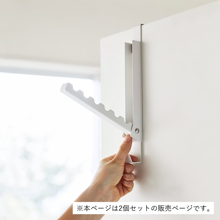 【Size】(1個あたり) 幅2cm x 奥行20.5cm x 高さ23.5cm フック部幅内寸:3.6cm 折り畳み時奥行:7cm 【素材】本体:スチール(粉体塗装) 【耐荷重】約7kg(フック・凹1つあたり:約1kg) 【付属品】木ネジx2 【取り付け可能なドア】 ・ドアの幅:本品の幅(約2cm)以上 ・ドアの厚さ:約2.7cm〜約3.6cmまで ・ドアと上部の隙間:約3mm以上 【取り付け可能な壁】 ・柱、かもい、板壁、ブリント合板 (裏側に水平にサンがある場所) ※ドアに傷が付かないよう丁寧に取り付けて下さい。 ※取り付けるドアの厚さにより ドア用フック部が不安定になる場合があります。 その際は、市販の緩衝材等で安定させた上でご使用下さい。 ※ガラス戸へのご使用はお避け下さい。 毎日着る 制服 や コート 。 次の日も着るのに いちいち クローゼット に 片付けるのは面倒…。 でも、 ハンガーラック や コートハンガー を 置くスペースもないし…。 そんな時は 折り畳める ドアハンガー を 使えば、手軽に コンパクト な ちょい掛け スペースが誕生します。 2個セット なので、1つには コート や 制服 、明日着るコーディネートを掛けて。 もう1つには カバン や マフラー を 掛けたり、使い方はイロイロ。 寝室 と 子供部屋 に 1つずつなど使う場所を分けても◎ 色々なシーンで活躍する 折り畳める ドアハンガー です。使わない時は収納できる ドアハンガー 2個セット ドアを収納に 毎日着る 制服 や コート 。次の日も着るのに、いちいち クローゼット に片付けるのは面倒…。でも、 ハンガーラック や コートハンガー を置くスペースもないし…。 そんな時は、 折り畳める ドアハンガー を使えば、手軽に コンパクト なちょい掛けスペースが誕生します。 2個セットなので、1つには コート や 制服 、明日着る コーディネート を掛けて。もう1つにはカバンやマフラーを掛けたり、使い方はイロイロ。 寝室 と子供部屋に1つずつなど、使う場所を分けても◎ 色々なシーンで活躍する、 折り畳める ドアハンガー です。 01. 使い分けられる2個セット 1つは コート や 制服 、明日着る コーディネート を掛けて。もう1つには、 カバン や マフラー を掛けたり、使い方はイロイロ。寝室と子供部屋に1つずつなど使う場所を分けても◎ 02. 手軽にスプレーをシュッ 脱いだ コート に手軽に除菌・消臭スプレーをかけられて乾くまで干しておける、便利な一時置きに。乾いた後に クローゼット に戻せば、 臭い移り や ウイルス対策 もばっちりです。 03. 簡単取り付け 取り付け方法は ドア の上部に引っ掛けるだけ。簡単に 収納 場所を増やせて、取り外しや移動もラクラク。 ドア だけでなく クローゼット の折り戸にも引っ掛けられます。 04. 折り畳んでコンパクト フック部分は折り畳み可能。使わない時も ドア の開閉の邪魔になりません。畳んでおけば生活感が出にくく、見た目もスッキリなので、急な来客時でも安心です。 05. 便利な凹凸 フック 部分の凹凸は合計6カ所。服を掛けたまま ドア や クローゼット を開け閉めしても ハンガー がずれないので、衣類同士がくっつかず、しわが付くのを防ぎます。 06. 室内干し におすすめ ハンガー同士が片寄らず等間隔に並ぶので、風通しは抜群。雨の日の 洗濯物 の 室内干し にも大活躍します。 07. どこでも取り付け 付属の木ネジを使えば、壁面や柱などに取り付けることもできます。場所を選ばず、好きなところに取り付けられるのは嬉しいポイント。