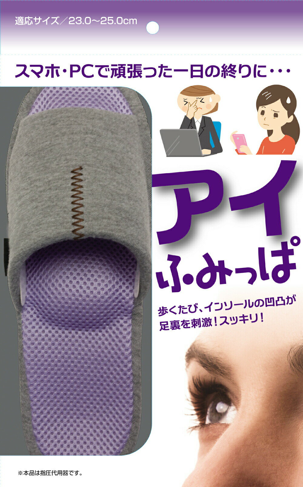 家事や家の中を動きまわる日常の暮らしのなかで、自分の体重を利用して足裏を刺激してくれます。足裏全体を指圧する従来の健康スリッパと違い、指圧箇所を絞り込むことによって、気になる部分だけをピンポイントに!まるでゲンコツでぐいぐいーっとされているような感覚です。凹凸のインソール、メッシュ素材で通気性抜群!適応サイズ23.0?25.0cm材質生地/ポリエステル中材・底材/ポリエチレン重量約215g生産国中国製注意事項・最初は様子を見ながら徐々に慣らしてください。・痛みを感じる場合は短い間隔からご使用ください。・本品は室内履きスリッパです。