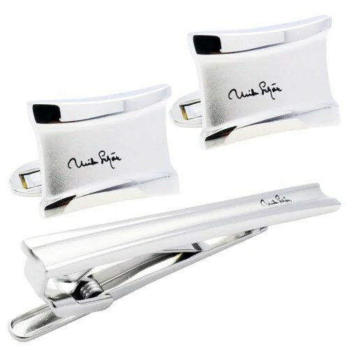 mila schon 厳格なまでのこだわりの中にこそ、新鮮なインスピレーションの源があると確信しあらゆる妥協を排して「完璧さ」の追求から生まれるデザインの数々。デザインの主体はシンプル&ベーシックをベースにデザインを加えクオリティーの高さを表現したメンズジュエリーです。 光沢あるシルバーのカーブに挟まれた ブランドロゴをあしらったマットシルバーの高級感あるデザインカフスとタイピンのセット。 ビジネスからカジュアルな普段使いまで幅広くご使用いただけます。 自分用、大切な人へのギフト・男性用プレゼントに最適。 専用のケースにいれてお届けします。 カラー:シルバー 素材:真鍮 サイズ カフス:約2.0cm x 1.5cm サイズ タイピン:約6.0cm x 0.6cm カフスNo:03-023-100 タイピンNo:01-023-050 ギフト対応