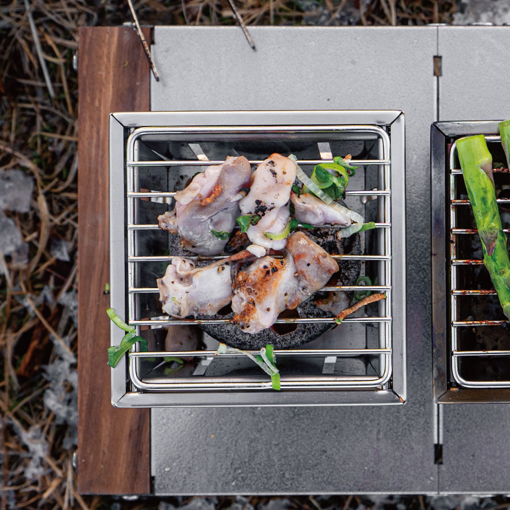 ブランド Mt.SUMI (マウントスミ) 商品名 パーフェクトグリル マイクロスクエア カラー シルバー サイズ 【展開時】:W11.5 × D11.5 × H9cm 【収納時】:W11.5 × D11.5 × H1.5cm 重量 約400g 材質 ステンレス EAN/JAN 4589804103484Mt.SUMI マウントスミ パーフェクトグリル マイクロスクエア 一つの素材を、自分のためにじっくりと焼く”ためのグリル バーベキューは意外と忙しく、素材をじっくり味わえないこともしばしば。 「自分のために、素材を少しずつじっくり焼いて楽しむ」ことをコンセプトに、超小型サイズの「パーフェクトグリル マイクロ」が誕生しました。 ソロキャンプでも、このグリルを持ち寄ってのグループキャンプでも、素材別にバーベキューをしたい時などに活躍できるグリルです。 ポケットサイズで携帯性抜群 展開時でも手のひらに収まる W11.5cm × D11.5cm × H9cm の超小型グリル。 折りたたむと厚さはなんと 1.5cm! 持ち運びやすく コンパクトに収納できます。 最小限の燃料で効率よく使用できる 円型の成形炭が一つ入る設計で、最小限の燃料で効率よく調理ができるため、荷物を減らしてキャンプを楽しみたい方にもおすすめ。 風防や五徳としても使用可能 アルコールストーブや固形燃料を中に入れ、風防や五徳としても使用できます。