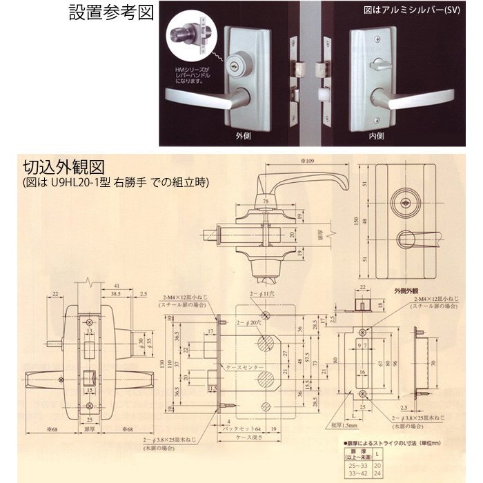 MIWA 美和ロック U9 HL20-1型 レバーハンドル錠 アルミシルバー色