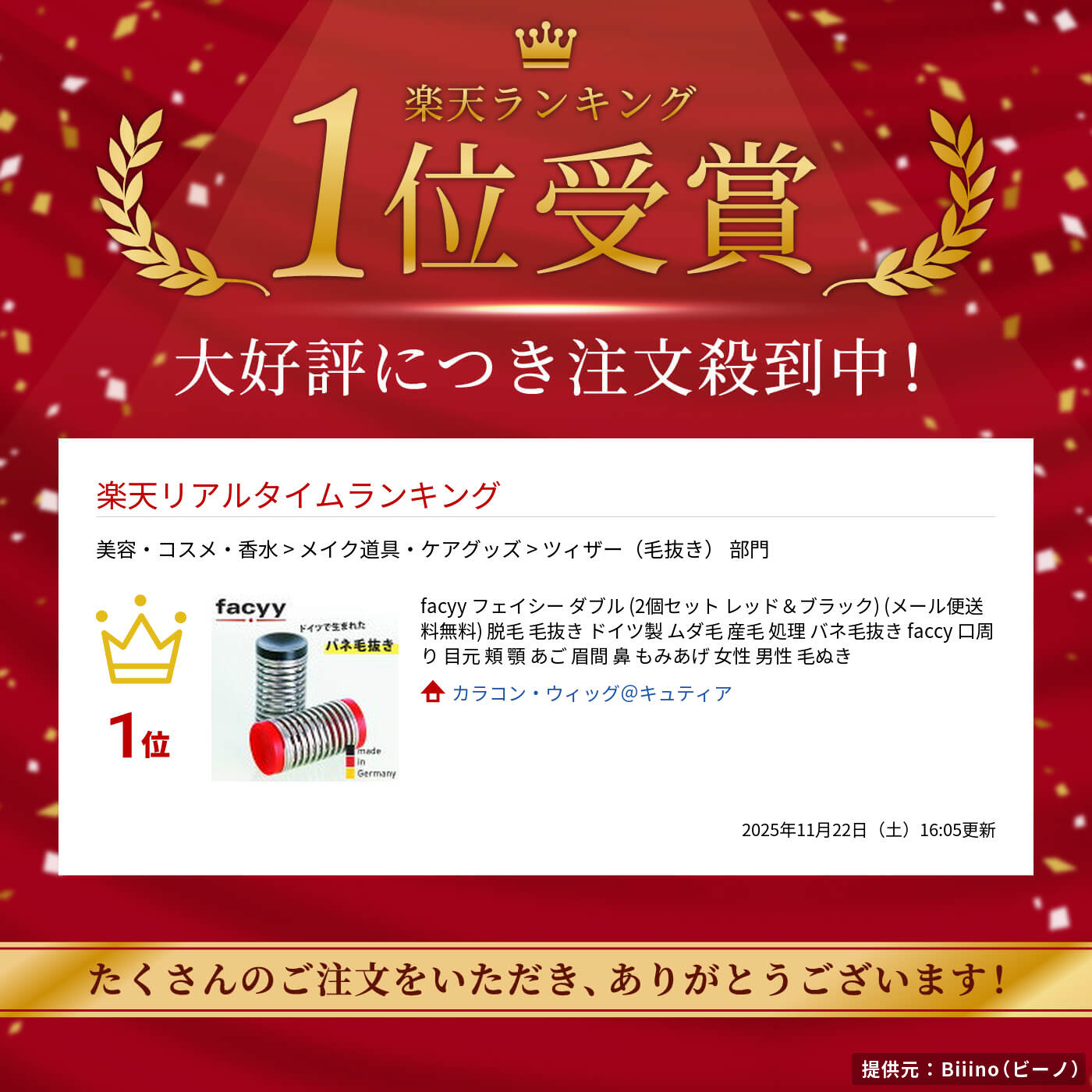 商品詳細 商品名 facyy(フェイシー) 商品説明 ピンセットの10倍掴める!10段のバネ構造で効率的にムダ毛を処理! 【ドイツ製・欧州特許取得】作りが精巧なので細い毛でもしっかりホールド! 【持ち運びが超便利!】超軽量コンパクトな専用ケース付き!どこでも身だしなみケア カラー ブラック、レッド各1個 材質 ステンレス鋼/ポリプロピレン製 使用方法 1.人差し指と親指でつまんで接地面にfacyyを当てて毛を掴みます。 2.皮膚に対して素早く抜く事で効果的に毛が抜けます。 生産国 ドイツ 区分 雑貨 メーカー 株式会社イマースジャパン 注意事項 当社では複数店舗で在庫を共有しており、システムで在庫調整を行っておりますが、TV放映等による一時的な注文数の増大や、在庫の更新タイミングにより在庫にずれが生じる場合がございます。 在庫更新が間に合わずご注文頂いた商品が欠品となる場合もございます。 欠品が生じた場合や商品の発送が遅れる場合は、改めてご連絡させていただきます。 ご迷惑をお掛けする場合がございますが、あらかじめご了承くださいませ。 広告文責 有限会社ビレイズ 06-6536-9555