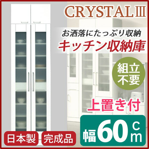 ■サイズ・色違い・関連商品■幅50cm 上置セット 玄関渡し■幅50cm 上置セット 開梱設置■幅60cm 上置セット 玄関渡し■幅70cm 上置セット 玄関渡し■幅60cm 上置セット 開梱設置[当ページ]■幅70cm 上置セット 開梱設置■幅80cm 上置セット 玄関渡し■幅80cm 上置セット 開梱設置関連商品の検索結果一覧はこちら■商品内容シンプルできれい。組み合わせて便利な上置き棚付き収納庫(食器棚収納)飛散防止効果フィルム加工ガラス使用。【特長1】老舗家具メーカー「アイクラフト」製国内最大級の家具産地である「福岡県大川地区」の老舗家具メーカー「アイクラフト」が企画・製造した商品です。【特長2】らくらく「開梱設置」サービス料金込み!配送業者がお客様ご指定のお部屋まで運び、ダンボールなどの梱包材を持って帰るため、即時利用でき、またゴミ捨ての手間を省くことができます。■商品スペック商品名: 【CRYSTAL3】クリスタル3(クリスタルIII)60収納庫上置付収納庫:幅595×奥行445×高さ1800 mm材質/MDF引出箱組移動棚ネジダボエナメル塗装磨きツヤ100%飛散防止効果フィルム加工ガラス使用上扉耐震ラッチ付上置:幅595×奥行445×高さ395 mm材質/MDF移動棚付日本製【ご注意事項】・本商品は、北海道・沖縄・離島への配送はいたしかねます。あらかじめご了承ください。・通常の宅配便ではなく家具専門の配送業者により九州から出荷するため、お届け先や配送業者の都合により出荷から到着まで5〜10日程度かかる場合がございます。・本商品は事前の到着日時指定はお受けしかねますが、原則として配送業者担当者から事前にお客様へ電話連絡をし、お届けスケジュールの調整をさせていただきます。・連絡が取れないと配送ができかねる場合がございます。配送先情報には日中ご連絡可能なお電話番号を入力してください。・ご購入前に商品梱包サイズが階段や廊下を通ることが可能かをご確認ください。・大型商品でございますので、追加送料が発生する場合がございます。下記に該当する場合には追加料金が発生する場合がございますので必ず事前にお問い合わせください。 ‐戸建、マンション、ビル、アパートの2階以上を階段で運ぶ場合 ‐エレベーターはあるが、商品が入らず階段で運ぶ場合 ‐エレベーターや階段でも搬入できず、吊り上げでの搬入になる場合 -配送日にご不在でお届けができず、再配達する場合。 -配送日にお届けができず、再配達まで日が開く場合。■関連カテゴリ食器棚(しょっきだな) レンジ台(れんじだい) レンジボード キッチンボード ダイニングボード キャビネット キッチン収納 白 国産 カントリー モダン スリム 木製 組立不要 おしゃれ 奥行50cm以内 奥行40cm程度【特記事項】配送地域によっては追加送料が発生する場合がございます。万が一発生した場合は、ご注文後追ってご案内させていただきます。■送料・配送についての注意事項●本商品の出荷目安は【4 - 10営業日 ※土日・祝除く】となります。●お取り寄せ商品のため、稀にご注文入れ違い等により欠品・遅延となる場合がございます。●本商品は仕入元より配送となるため、北海道・沖縄・離島への配送はできません。[ 138451/138456 ]