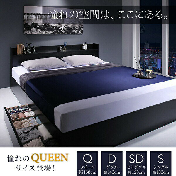 棚・コンセント付収納ベッド ベッドフレームのみ ダブル 組立設置付
