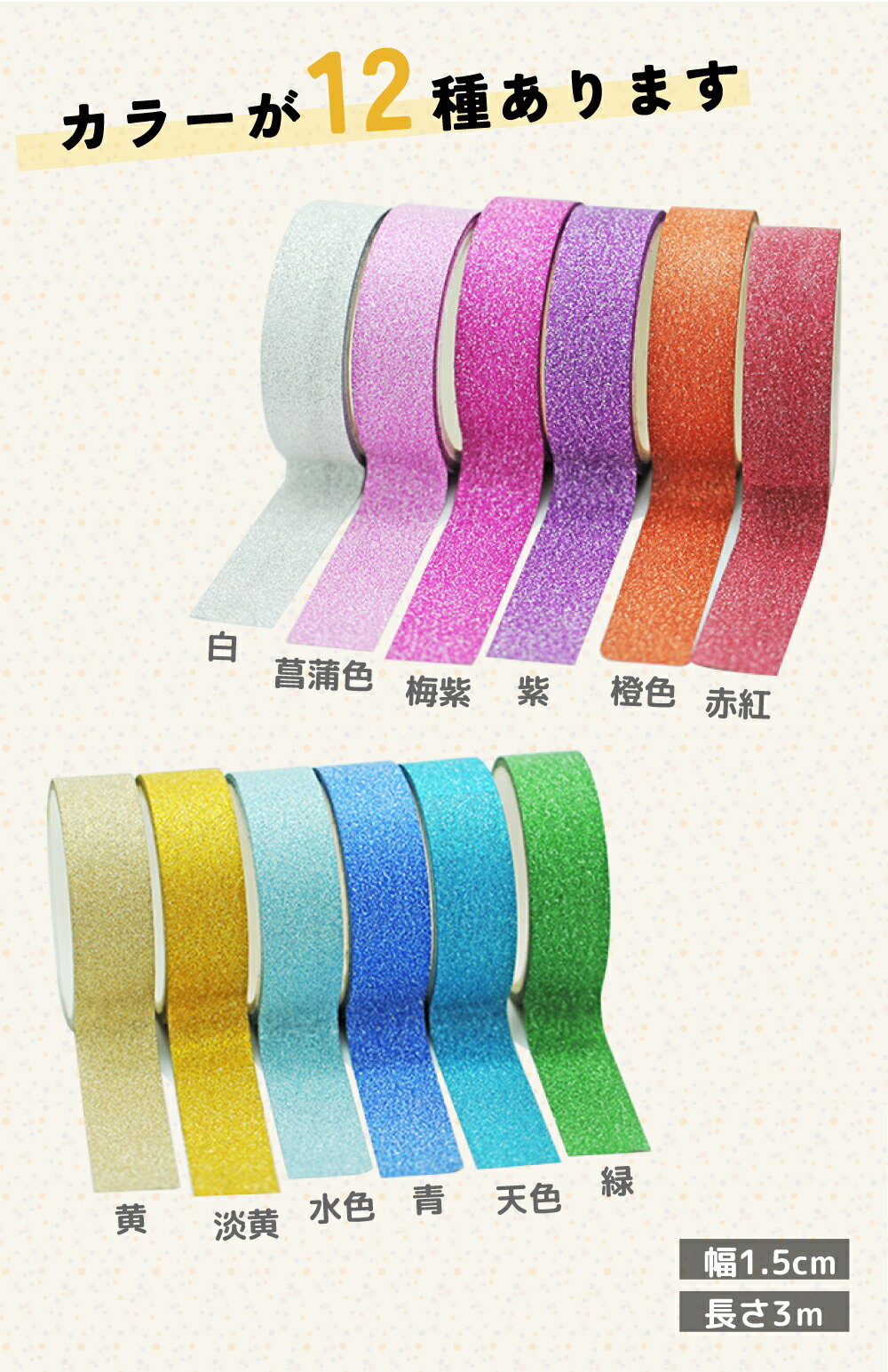 ラメ マスキングテープ 12巻セット 無地 マステ 幅1.5cm 長さ3m 12色 カラー 手帳 母の日 Cyberplugs