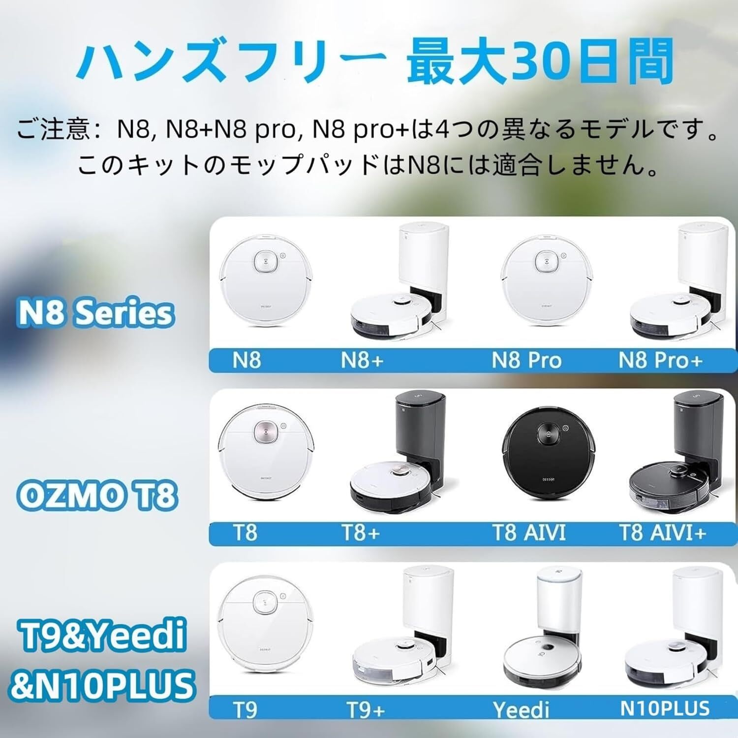 ■ 対応機種 Deebot Ozmo N8+ N8 Pro N8 Pro+ T8 T8+ T8 AIVI T8 Max T9 T9+ N10PlUS ロボット掃除機に対応のエコバックス消耗品アクセサリです。「純正品ではありません。」 ■ パッケージ内容 消耗品セット: エッジクリーニングブラシ6本、フィルター 3個、メインブラシ 1セット、ダストボックス 4個、繰り返しモップ4個です。 ■ 【高品質】 優れた材料を採用したフィルターは掃除機の浄化性能を維持し、空気の中にやホコリが立つのを抑えることができます。 ■ 【お手入れ簡単】 ゴミがいっぱいになったら交換できます。日常のメンテナンスの一環として、簡単に取り外して交換できます。 ■【交換目安】 表面にゴミが付着して斑点ができたり、吸引力が弱まったりしたときに交換してください。 ■ 注意事項 ※測る位置によって、本体サイズの誤差が生じる場合がございます。ご了承下さい。 ※製品のデザイン、仕様は改良のため予告なしに変更する場合があります。 ※掲載の商品画像と実際の色は、室内、室外での撮影の状況、モニターの表示等により若干異なる場合がありますので、ご了承くださいませ。実際の商品を参照してください ※本製品は純正品ではありません、交換品です。