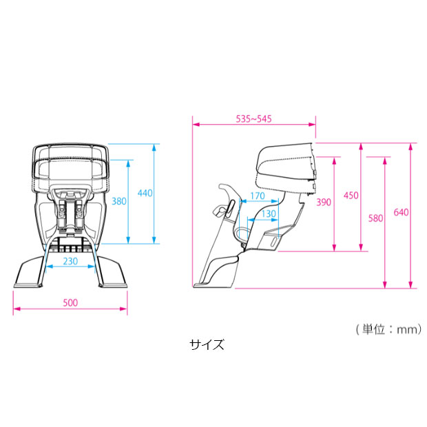 ハグされているような安心感。ヘッドレスト付フロントベビーシート「グランディア」。小さいお子さまに目が届くまえ乗せタイプ。ヤマハ幼児二人同乗対応。・ヤマハ幼児2人同乗対応・パナソニック幼児2人同乗非対応(メーカー純正チャイルドシートをお使いください)注意事項※取付けは自転車販売店にお申し付けください。※幼児2人同乗用自転車や20インチサイズに取付ける時は、必ず自転車メーカーの推奨が必要です。お求めの前に自転車に付属の取扱説明書の記載を御確認いただくか、ご不明なときは自転車メーカーにお問い合わせください。※ハンドルステムの突き出し寸法:40mm、50mm、60mmに適応製品名フロントベビーシート”グランディア” FBC-017DX3適用体重体重15kg以下適用年齢と身長1歳(12ヶ月)以上4歳(48ヶ月)未満のお子さまで身長100cm以下適合車種自転車メーカーが指定する20型以上のシティ車及び幼児2人同乗基準適合車。(※電動自転車を含む)(※両立スタンド装着車に限る。ハンドルストッパーを備えた自転車に取付けることが望ましい。)(※但し、ダイヤモンド型フレームやハンドルの形状によっては 取付けが出来ない場合もあります。)ハンドル径/Φ22.2mm ハンドルポスト径/Φ22mm用〜Φ28.1mm用製品重量約4.2kg品質表示本体:ポリプロピレンショルダーパッド部:PVC座布団:PVCネジ類:鉄製品サイズ[外寸]幅:500x高さ:580〜640<背もたれ高さ:390〜450>x奥行:535〜545(mm)座面サイズ幅:230x高さ:380〜440x奥行:170<尻面:130>(mm)対応オプショングッズRCF-008 ヘッドレスト付フロントチャイルドシート用レインカバーRCF-009 ヘッドレスト付フロントチャイルドシート用レインカバーUV-012F ヘッドレスト付フロントチャイルドシート用サンシェード掲載している商品の在庫については、実際の在庫情報と連動しておりません。ご注文後に仕入先・弊社倉庫に在庫を確認・確保した後、在庫状況・合計金額をメールにてお知らせいたします。選択できないサイズ・カラーは、取扱終了もしくは生産終了です。製品の仕様・価格等につきましては、予告無く変更することがあります。製品の色につきましては、実際とは違って見える場合があります。掲載している重量につきましてはカタログスペックの為、実際の商品とは異なる場合があります。特に軽量モデルに関しては個体差が多く見受けられます。