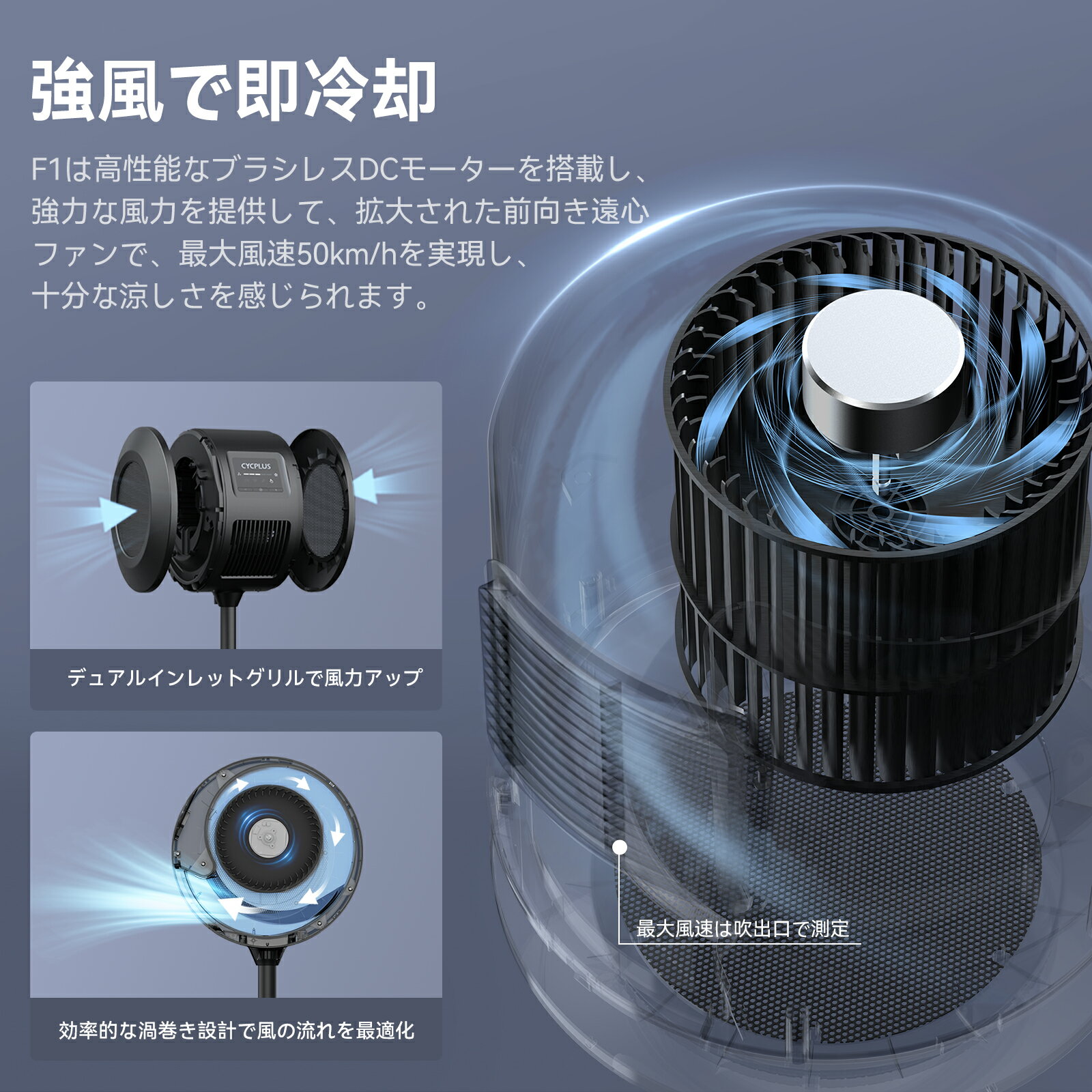 ・【強力な風で瞬時にクールダウン】F1はBLDCモーターと広い遠心ブレードにより、最大50km/hの強力な風を生み出し、体を涼しく保ちます。(最大風速はファン出口で測定) ・【5段階のスピードモード、調整可能】ANT+スピードセンサー、心拍計、パワーメーター、またはスマートバイクトレーナーと接続し、リアルタイムの運動データに基づいて最適な冷却を提供します。 ・【デュアルベースデザインで自由な風向】地面ベースと高さ調整可能なスタンドに対応し、前方や上向きなど柔軟に風向を調整可能。(最適な設置距離:1メートル) ・【スマートリモコン&アプリ制御】簡単にペアリングできるリモコンで遠隔操作が可能。ペアリング後は自動接続でスムーズに使用できます。CYCPLUSアプリでトレーニングパラメータを調整し、フィットネスレベルに合わせた設定が可能です。 ・【デュアルノイズリダクション】静音BLDCモーターと衝撃を抑えたブレードで、振動のない静かな運転を実現。トレーニングしながら静かに動画視聴ができます。 【注意事項】: ・当店の商品は全て国内から配送されます。 ・国内配送の商品は国内でのお買い物と同じく消費税が発生いたします。関税はかかりません。