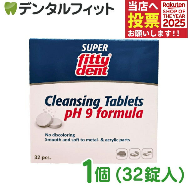 フィッティデント社(ヨーロッパ)の義歯・矯正床・マウスガード用の洗浄剤です。 世界50カ国以上で販売されています。 コーヒー・紅茶・ニコチンなどのステインにも有効です。 【成分】 スルファミン酸、リン酸三ナトリウム、炭酸ナトリウム、ポリビニルピロリドン、ラウリル硫酸ナトリウム、ブリリアントブルーFCF、テトラアセチルエチレンジアミン、無水エデト酸二ナトリウム、クエン酸、安息香酸ナトリウム 【使用方法】 1.義歯または矯正床、マウスガードなどを取り外し、流水ですすぎながら歯ブラシ(義歯ブラシ)でブラッシングします。 2.コップ1杯(150ml〜200mlの水・ぬるま湯)に1回1錠を溶かし溶液を作ります。 容器の水は毎日お取替えください。 ※ぬるま湯(20〜40℃)でのご使用をおすすめします。 3.義歯または矯正床、マウスガードなどを溶液に入れ全体を浸します。 ※10分以上浸してください。 4.義歯または矯正床、マウスガードなどを溶液から取り出し流水でよくすすいでください。 ※金属の種類によっては変色する場合があるため使用はお控えください。 1箱/32錠入【ご注意(免責)事項】当店では、サイト上に最新の商品情報を掲載するよう努めておりますが、メーカーの都合等により、商品規格や仕様(容量・成分・パッケージ・原産国など)が予告なく変更される場合がございます。このため、実際にお届けする商品と商品ページ上の情報表記が異なる場合がございますので、ご使用前には必ずお届けした商品の商品ラベルや注意書きをご確認ください。また、商品情報についてページ表記以外の詳細が必要な場合は、メーカー等にお問合せください。