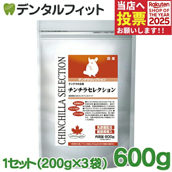 【★ポイント5倍 11/1 0:00-23:59】チンチラセレクション 600g 1セット(200g×3袋) チンチラの餌 国産 日本製 粒形状を採用 高機能ビタミンC配合 チンチラ専用高品質総合栄養フード プレミアムチンチラフード