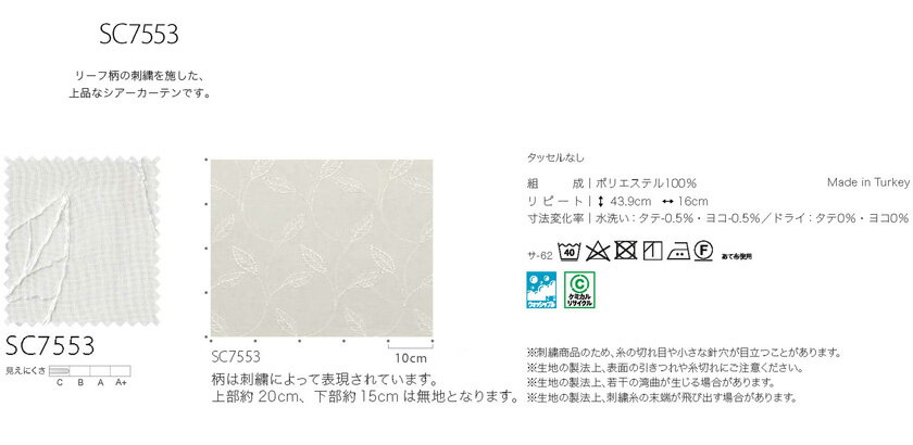 サンゲツ▼ストリングス オーダーカーテン SS仕様(スタンダード) 約2倍ヒダ(本縫い) 裾:折返し▼SC7553 シアー レース Design Sheer【カーテン幅2510〜3000×カン下寸法2010〜2200mm】