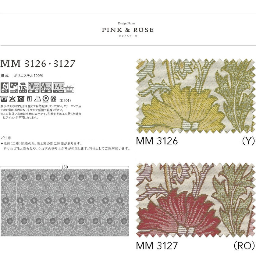 ウィリアムモリスデザインスタジオ ピンク&ローズ MM3126〜3127▼ソフトウェーブ縫製 下部3ッ折 約2倍ヒダ 両開き(幅6630mm以上) オーダー ドレープカーテン▼タテ使い 川島織物セルコン【カーテン幅8250〜9000×カン下寸法3610〜3800mm】