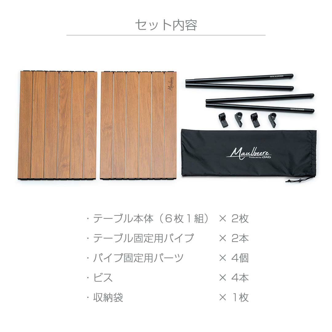アウトドア キャリーワゴン用 折り畳みテーブル 茶木目【OA014-01-01】 FOLDING TABLE for OUTDOOR CARRY WAGON ● 商品特長 ・汎用タイプ独自に自社開発したパーツ設計により、一般的なアウトドアキャリーワゴンに対応! ・暖かみのある木目調デザインどんなアウトドアキャリーワゴンにも合う暖かみのある木目調デザイン。 ・折り畳み可能テーブルはコンパクトに折り畳み可能!コンパクトなボディはアウトドアに最適! ・超軽量 1.96kg天板・パイプフレームすべてアルミニウム合金を使用、実用性の高い軽量ボディを実現。 ・収納袋付属本体と付属部品をすべて収納できる収納袋付きで、持ち運びもラクラク! ・分割テーブル2分割設計のテーブルにより用途にあわせて【半面】【全面】を使い分けることができるのでとても便利! ・7075アルミニウムパイプフレームには航空機の機体にも使用される程の強度を誇る「7075 ALUMINUM」を採用。7075アルミニウムを採用することで、錆びにくく、さらに強度と軽量化を両立させることに成功。 ● カラー 茶木目 ● セット内容 ・ テーブル本体(6枚1組)× 2枚 ・ テーブル固定用パイプ × 2本 ・パイプ固定用パーツ × 4個 ・ビス × 4本 ・収納袋 × 1枚 ● 取付可能サイズ・対応形状 H560mm以内×W1020mm以内 四隅が三角コーナー状になっているアウトドアキャリーワゴンに対応しています。 軽量 軽い コンパクト テーブル 天板 キャリーカートワゴン アウトドアキャリー キャリーワゴンテーブル キャリーカートテーブル アウトドアワゴンテーブル レジャーテーブル 折畳 畳める たためる 折り畳める 折り畳み 折りたたみ キャリーカート アウトドアワゴン キャリーワゴン アウトドアキャリー ワゴン アウトドア キャンプ ソロキャンプ アウトドア用品 キャンプ用品 キャンプ道具 簡単 かんたん 初心者 ビギナー 道具 アウトドアグッズ レジャー 山 海 ビーチ 公園 フェス 屋外イベント バーベキュー BBQ 運動会 クラブ活動 部活動 お花見 キャンピング グランピング おすすめ 人気 カー用品 便利 便利グッズ お洒落 オシャレ おしゃれ カッコイイ かっこいい