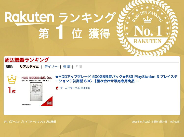 ★HDDアップグレード 500GB換装パック★PS3 PlayStation 3 プレイステーション3 初期型 60G 【組み合わせ販売専用商品】※必ずPS3本体(全機種対応可)とセットでお買い求めください