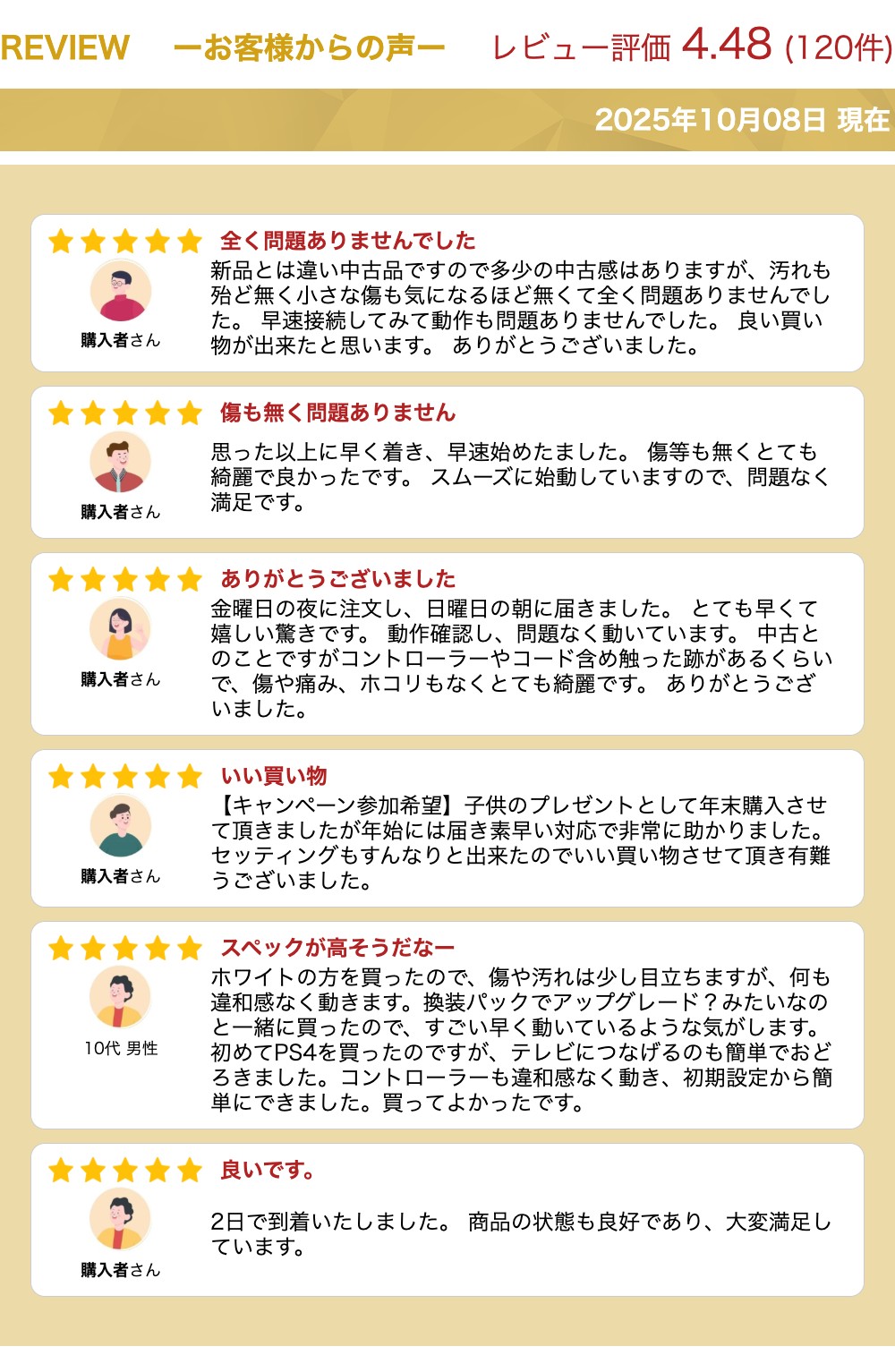 商品情報 商品状態 ★すぐ遊べるセット★ 【内容物】※画像はイメージです ■本体(CUH-2000〜2200)※型番はお選び頂けません ■HDD 500GB ■純正コントローラー ※カラーはランダムとなります ■USBケーブル ■HDMIケーブル ■電源ケーブル ※箱・説明書等、その他記載のないものは欠品しております。 ※動作確認済み。 綺麗なエアキャップ包装でお送りします。 当社ではすり替え防止のため商品の写真、シリアルナンバーを控えて管理しております。 ---------------------- ↓本体のアップグレードをご希望の方はコチラ↓ ---------------------- 応募方法を確認 商品の説明(新品の場合) 主な仕様 関連商品PS4 PRO 本体 【 すぐ遊べるセット 】★ 純正コントローラー ...PS4 本体 500GB 【 すぐ遊べるセット ★ 純正コントローラー...PS4 本体【本体のみ】 500GB ☆ ソフト1枚プレゼントキャンペ...29,800円21,980円22,000円PS4 本体 500GB 【本体のみ】 ☆ ソフト1枚プレゼントキャン...【中古】New Nintendo 3DS LL 本体 【すぐ遊べるセッ...PS3 初期型 本体【すぐ遊べるセット】60GB ★ PS,PS2ソフ...21,000円28,900円26,800円Nintendo Switch すぐに遊べるセット 純正アダプタ・ドッ...PS3 初期型 本体【すぐ遊べるセット】20GB ★ PS,PS2ソフ...PS3 本体 【すぐ遊べるセット】120GBPlayStation 3...28,800円23,980円16,800円PS3 後期型 本体 【すぐ遊べるセット】★純正コントローラー★ 25...【中古】New Nintendo 3DS 本体 【すぐ遊べるセット】※...PS3 本体 【すぐ遊べるセット】160GB ★純正コントローラー★ ...16,800円25,980円16,800円