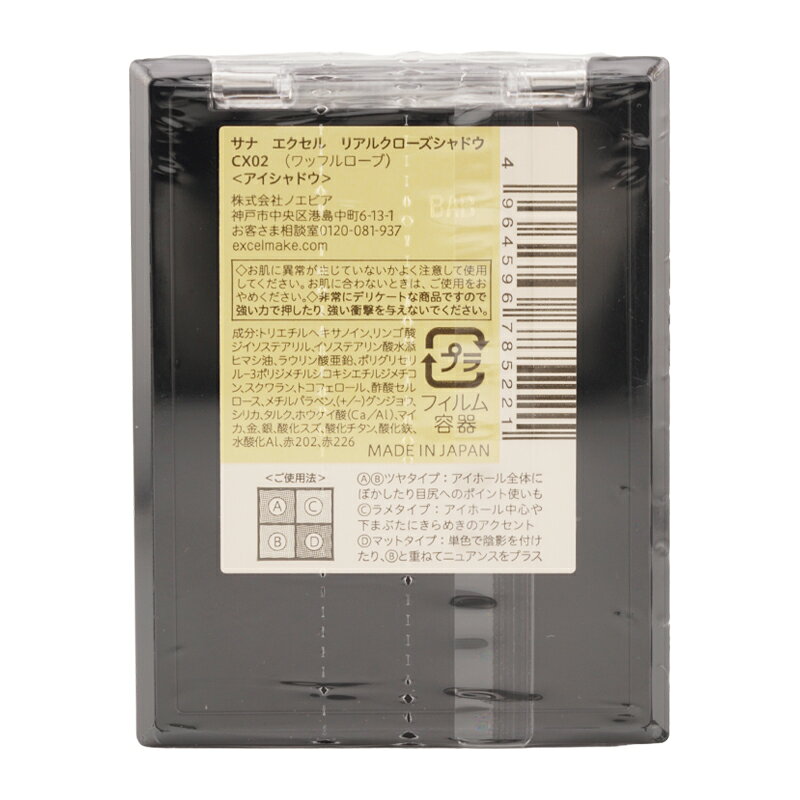 excel エクセル リアルクローズシャドウ CX02 ワッフルローブ 3.5g アイメイク アイシャドウ 4色 メイクアップ パウダーアイシャドウ[ギフトラッピング対応]