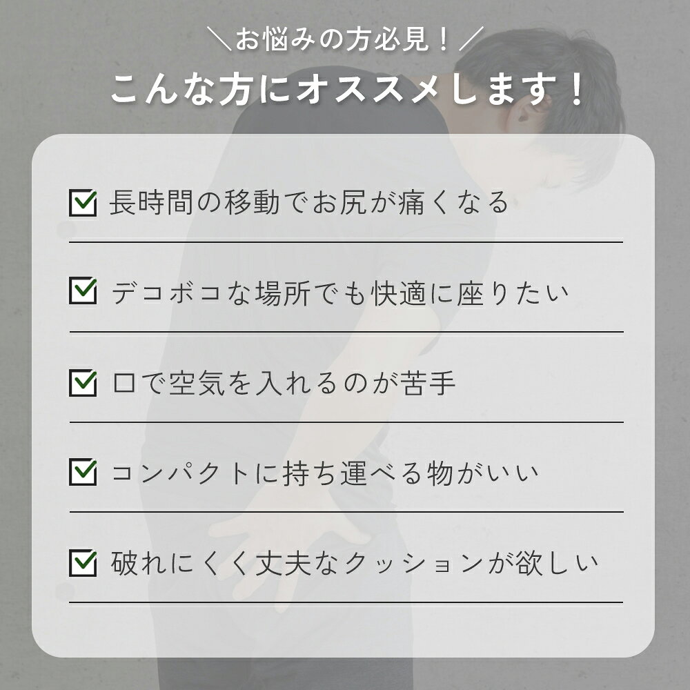 【全品10%OFF♪ブラックフライデー】【指押しで空気入れ!】折りたたみ エアクッション 軽量 コンパクト 携帯 座布団 アウトドア クッション 旅行 飛行機 夜行バス イベント 登山 釣り キャンプ お尻が痛くならない 収納袋付き