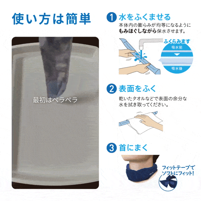 選ばれ続けて20年!!累計販売数1,000万本突破!! ネッククーラーのパイオニアである「マジクール」は2005年の発売以来、累計1,000万本以上の販売実績を誇り、多くのお客様に愛されてきました。 数々の類似品(中には粗悪品と呼ばざるを得ない品質の物)が出回る中、お客様のご指摘・要望に耳を傾けて常に改良を重ね、お客様の求める品質を追究し続けてきました。その結果、ネッククーラー及び冷感製品のトップブランドを維持し続けています。 製品仕様 製品名 マジクールEX (L/LLサイズ) 材質 ・生地…綿100% ・内容物…特殊吸水ポリマー ・面ファスナー…ナイロン100% サイズ 約(縦)5.5cm×(横)57cm 品番 ネイビー…DNIMC2L-NB ライトブルー…DNIMC2L-LB JAN ネイビー…4529214017339 ライトブルー…4529214017346 製造国 韓国