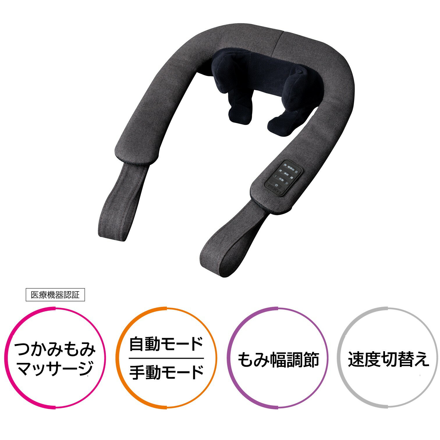 商品情報メーカー名大東電機工業株式会社ブランドスライヴ販売名つかみもみマッサージャー MD-460医療機器認証番号306AHBZX00001000医療機器の種類管理医療機器定格AC100V 50/60Hz 20W 20分オートタイマー約10分もみ回数速 約14回/分 遅 約10回/分外形寸法幅 約37cm×奥行 約39.5cm×高さ 約12.5cm質量約1.45kg電源コード長さ約1.8m材質本体:ポリエステル布カバー:ナイロンJANコード4975287700126梱包箱寸法幅 約17.5cm×奥行 約36cm×高さ 約21.5cm梱包箱重量約2.1kgスライヴ つかみもみマッサージャー MD-460 「首・肩、腰、脚をプロ技でほぐす。もみ幅調整機能・速度切替え機能付き」 グレー 管理医療機器 5