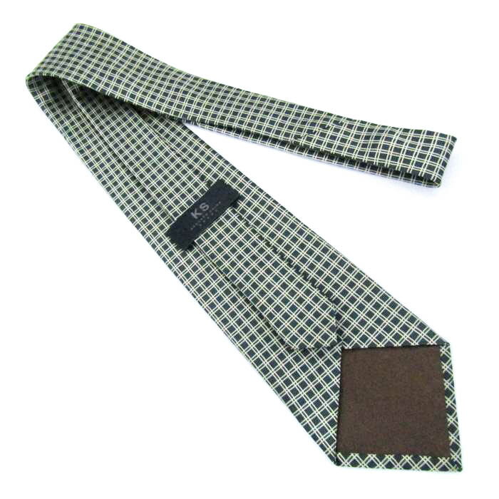 コウサクシマ ブランドネクタイ チェック柄 格子柄 シルク 日本製 メンズ グリーン KS KOHSAKU SHIMA 【中古】