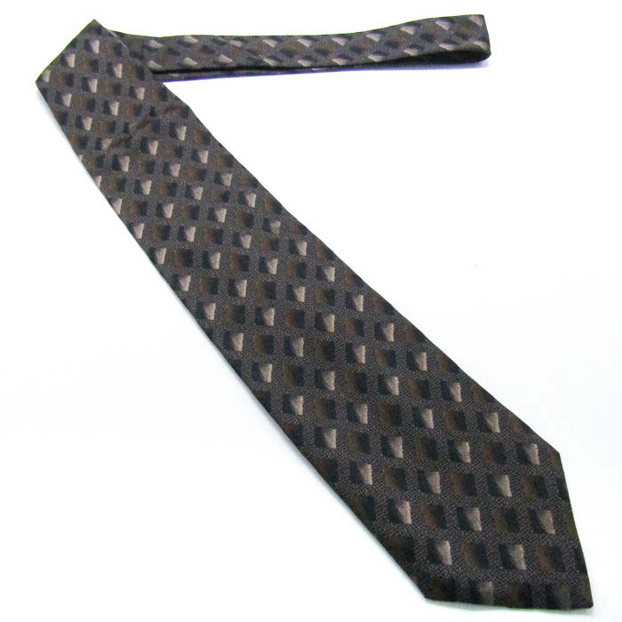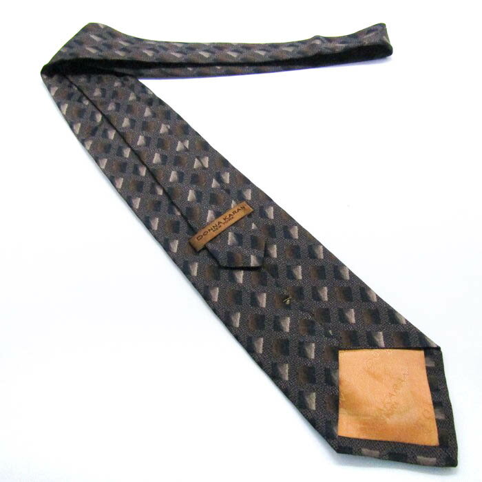 ダナキャラン ブランド ネクタイ 格子柄 パネル柄 シルク アメリカ製 PO メンズ ネイビー Donna Karan 【中古】