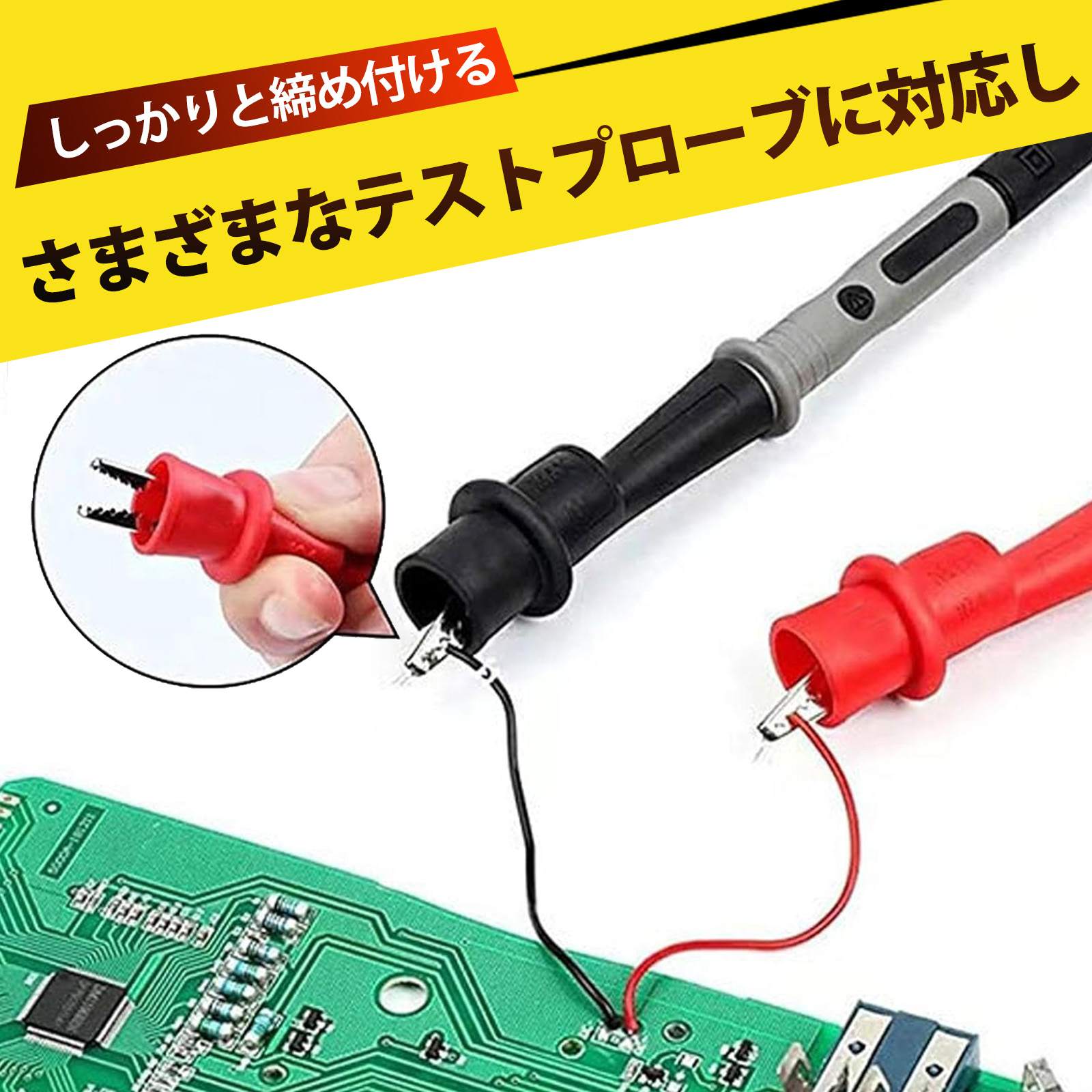 商品詳細材質PVC + イエロースチールニッケルメッキインターフェース4mmバナナプラグ適用対象さまざまな電流、電圧、抵抗の測定に適しています。商品の説明1.【赤黒セットで見分けやすい】:2個セット(赤・黒各1個)で極性が一目瞭然。配線ミスを防止し、作業効率が向上します。2.【高導電性で安定した測定を実現】:高品質な黄銅素材にニッケルメッキを施したことで、優れた導電性と耐久性を実現。電気テストや測定の精度を向上させます。3.【PVC絶縁体で安全対策バッチリ】:クリップ外側は高品質PVCで完全カバー!誤接触による短路や感電リスクを軽減し、作業中の安全性を確保。学生の実験から現場作業まで安心してご使用いただけます。4.【長期間使っても変形しにくい堅牢設計】:クリップ部は全体がしっかり密閉されており、長時間・繰り返しの使用でも形状が崩れず、安定した固定力を維持します。5.【幅広い測定ニーズに対応】:電流・電圧・抵抗測定など多用途に活用可能。学校の実験から、車両整備、家庭内の電気作業まで幅広く対応します。ご注意1.手工測定にはわずかな誤差がありますので、ご理解ください。2.撮影時の光線、照明、およびディスプレイの解像度や設定によって、多少の色の違いが生じる可能性があります。実物を参考にしてください。