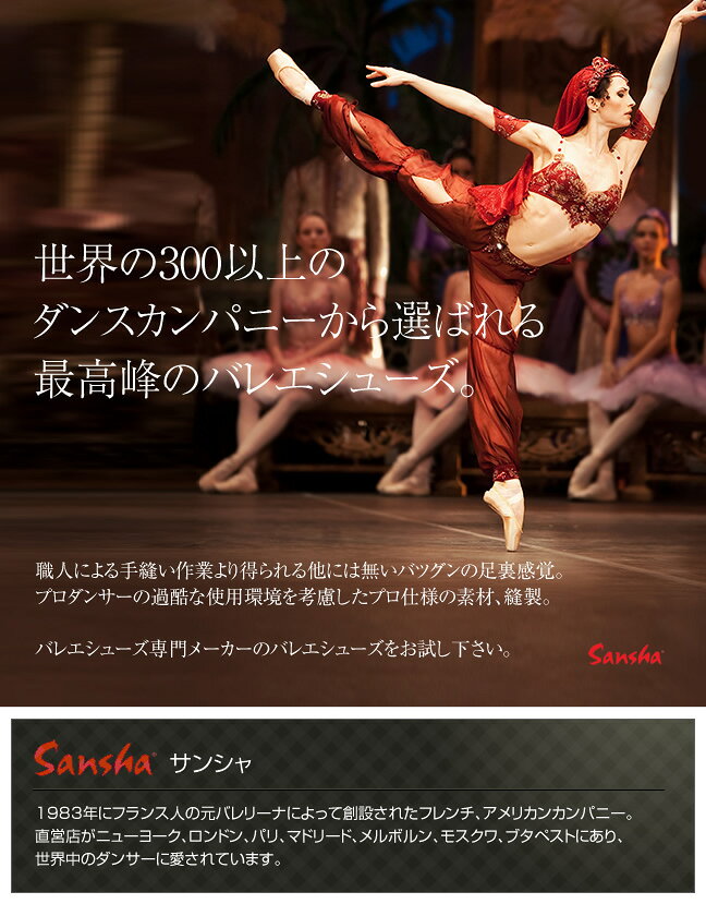 バレエ バレエシューズ トゥシューズ トウシューズ ポワント レオタードSansha スプリットソールバレエシューズ 1CPRO 世界中、300以上のダンスカンパニーから選ばれる最高峰のバレエシューズ。ボール部の裏底は高度な技術による手縫いで、縫い目が外に出ないタイプ。足なじみが違います。 関連商品 ZBS002 しっかりした素材&縫製。トゥシューズのようなホールド感で見た目も美しいバレエシューズ。 1,380円 ZBS006 バツグンのストレッチで、爪が伸び・甲が出る。 足を美しく魅せるバレエシューズ。 2,280円 商品名 Sansha スプリットソールバレエシューズ 1C PRO 商品特徴 ・有名バレリーナに愛用者が多い Sansha(サンシャ)のバレエシューズ“1C Pro(プロ)“ ・ボール部の裏底は高度な技術による手縫いで、縫い目が外に出ないタイプ。 足なじみが違います。 ※※類似品にご注意ください※※Sanshaのバレエシューズの中でボール部分が手縫いなのはPRO(プロ)のみです。SILHOUETTE(シルエット)、TUTU(チュチュ)は機械縫いになります。 ・ソールの材質と縫製はバレエシューズを選ぶ上で最も重要な部分です。 ・衝撃を緩和し耐久性に優れたスプリットソール。 ・バレエ専門メーカーのバレエシューズをぜひお試しください。 ・入荷時期によりゴムをクロスに縫い付け済みのタイプと、片側をご自分で縫い付けていただくタイプのものがあります。 カラー ブラック・ピンク・ホワイト・フレッシュブラウン ※ モニターの発色の具合により実際の商品と色が異なる場合がございます。 サイズ ・ピンク:21.5cm〜25.5cm ・ブラック:21.5cm〜28cm ・ホワイト:21.5cm〜28cm ・幅:普通/幅広 素材 ・キャンバス ・ソール:レザー その他 ※メーカーの仕様変更により付属のシューズバッグはなくなりました。ご了承ください。 使用シーン等 バレエシューズ 1C pro スプリットソール サンシャ 正規代理店 Sansha 大人 キッズ バレエ用品 子供 ダンス用品 バレーシューズ こども バレエ衣装 ジュニア ダンスシューズ キッズ キッズダンス 練習 スリッポン ※ご注文に際して確認のお願い ◆ 商品画像について モニター等の発色等より、画像と実物で多少異なって見える場合がございます。