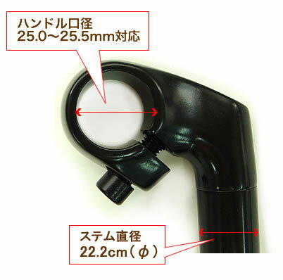 25日エントリー&楽天カード決済ポイント10倍+クーポン自転車用 ハンドルステム 一般車用 (ステンレス、ブラック)ステム径22.2mm、対応するハンドルクランプ径25.0mm〜25.5mm