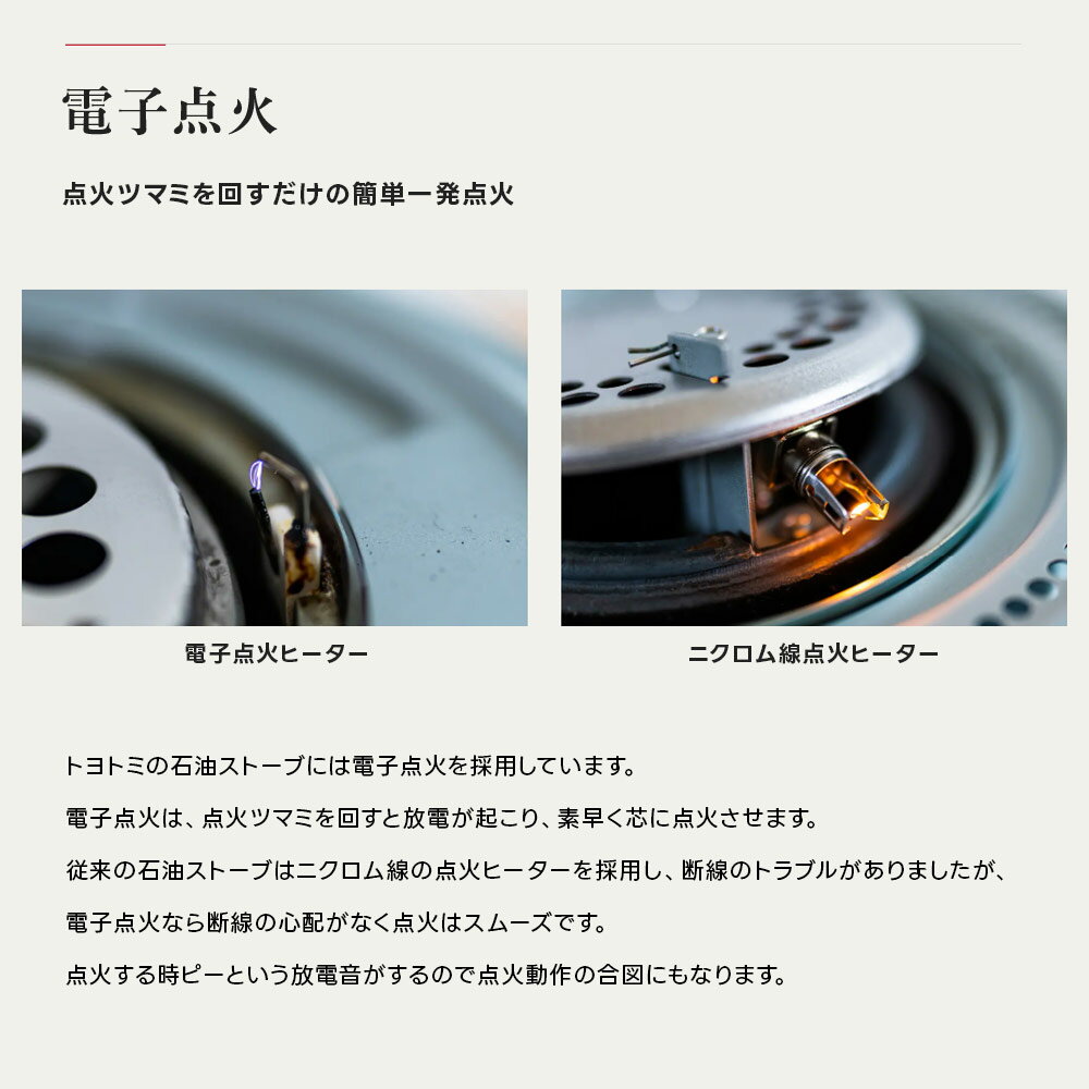 ● 商品スペック ・ 乾電池別売: 単2(4本必要) ・ 暖房の目安: コンクリート(集合) 24畳(39.5m2)まで ・ 木造(戸建): 17畳(28.0m2)まで ・ タンク容量(L): 6.3 ・ 質量(kg): 11.0 ・ 暖房出力(kW): 6.66 ・ 火力調節幅 - ・ 燃料消費量(L/h): 最大燃焼〜最小燃焼 0.647 ・ 燃焼継続時間(h): 最大燃焼〜最小燃焼 9.7 ・ 耐熱しん: 125種 ・ 本体外形寸法(置台含む): 高さ×幅×奥行(mm) 583×482×482