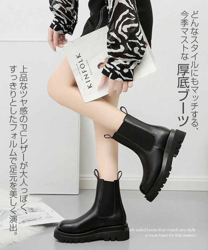 【期間限定:4,990円→3,990円!】 ブーツ サイドゴアブーツ チェルシーブーツ ショートブーツ ミドルブーツ 防寒ブーツ 滑りにくい 脚長効果 美脚 歩きやすい 軽量 厚底ソール 秋冬 通勤 通学 【PUレザーサイドゴア厚底ブーツ】 ダークエンジェル