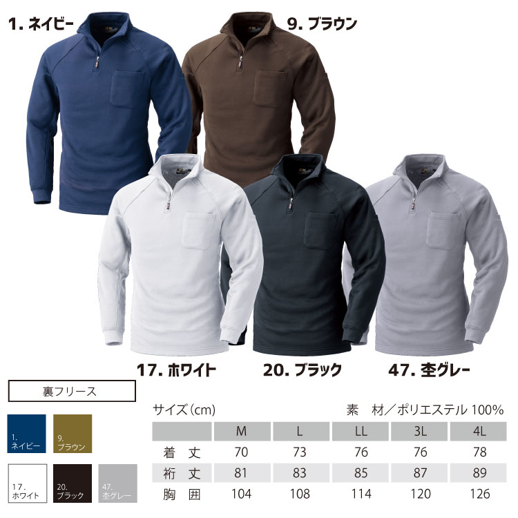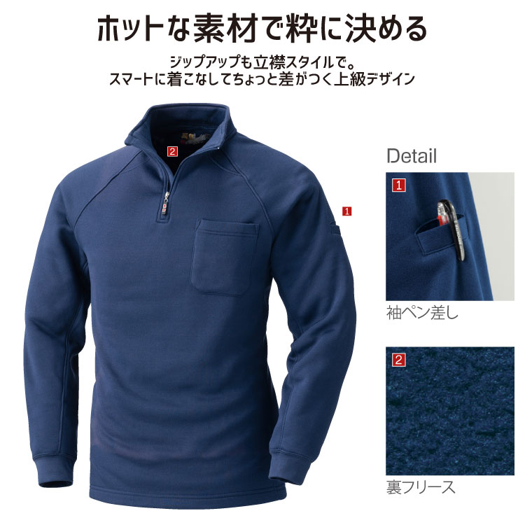 鳳皇 232 裏フリースジップアップシャツ 【M-3L】 【村上被服】 長袖 裏フリース 胸ポケット付き 袖ペン差し【秋冬】 長袖 作業服