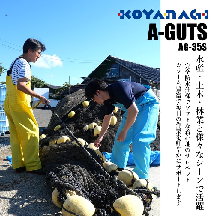 水産合羽 サロペット ズボン カッパ 完全防水 レインパンツ エースガッツ レインスーツ オーバーオール ズボン コヤナギ AG-35S 雨合羽 土木作業用 森林用 作業用合羽 漁業用 レインスーツ アウトドア 釣り KOYANAGI だるま商店のおすすめ品