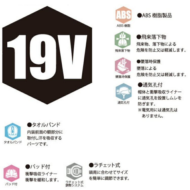 ■シンワ Shinwa SS19VPRAプロ艶消しマット塗装ヘルメット艶消しブラックビニールあご紐/耳紐仕様 ■機能、仕様 サンドストーンマット あご紐/耳紐:艶消しブラックビニール仕様 着サイズ:最大61cm 完成重量:410g 内装:ラチェット式調整・タオルバンド・スチロール 製品仕様:ABS樹脂・飛来落下物用・墜落時保護用・新型通気口 【名入れ加工につきまして】 型代、印刷代等を含めた別途お見積りさせていただきます。ご希望のお客様はお手数ですが、一度お問い合わせいただきますようお願い申し上げます。 ※PC環境によって色の差異がありますのでご了承下さい。 ※説明書き、注意書きをよくお読みになりご使用ください。 その他ヘルメット関連はこちら