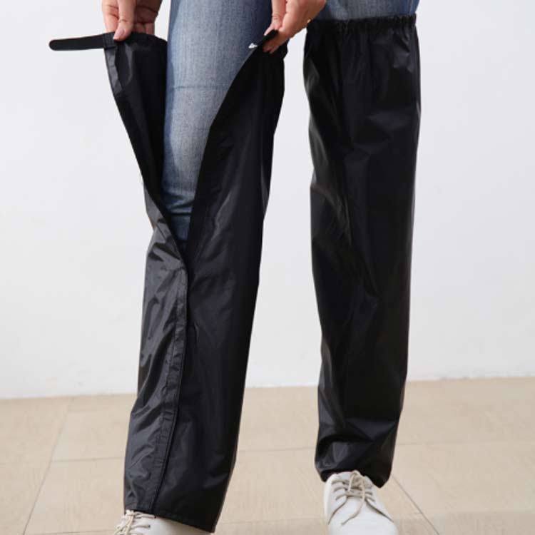 簡単装着!足首からひざ上丈まですっぽり覆ってくれる、ロング丈のレインレッグカバーマジックテープでつなげて合体させると、エプロンに変身する2WAY仕様!靴を履いたままカンタンに脱着ができる、脚だけのレインコートです。フルオープンタイプのレッグカバーなのでオーバーパンツを履くより簡単に雨からズボンを守ります。太もも側はゴムバンド式になっていますので、ズレ落ちにくい要になっています。左右セットの商品ですが、2つを組み合わせると腰回りの防水エプロンとしても使用可能です。靴の部分はカバーしませんので、長靴との組み合わせがベストな使い方です。雨の日のバイク・スクーター・自転車通勤・通学で役立ちます。 サイズ M L XL サイズについての説明 表記の通り 素材 ポリエステル PVCコーティング 色 ブラック 備考 ●サイズ詳細等の測り方はスタッフ間で統一、徹底はしておりますが、実寸は商品によって若干の誤差(1cm〜3cm )がある場合がございますので、予めご了承ください。 ●商品の色は、撮影時の光や、お客様のモニターの色具合などにより、実際の商品と異なる場合がございます。あらかじめ、ご了承ください。 ●製品によっては、生地の特性上、洗濯時に縮む場合がございますので洗濯時はご注意下さいませ。 ▼色味の強い製品によっては他の衣類などに色移りする場合もございますので、速やかに(脱水、乾燥等)するようにお願いいたします。 ▼生地によっては摩擦や汗、雨などで濡れた時は、他の製品に移染する恐れがございますので、着用の際はご注意下さい。 ▼生地の特性上、やや匂いが強く感じられるものもございます。数日のご使用や陰干しなどで気になる匂いはほとんど感じられなくなります。