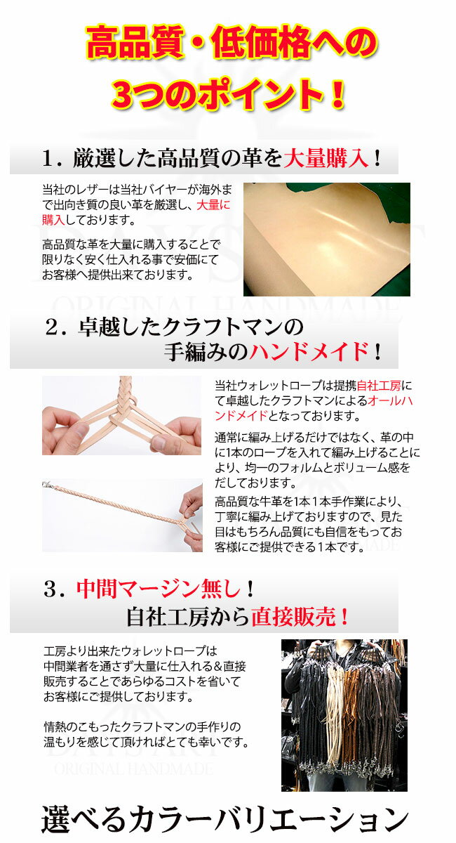 【メール便送料無料】6本編みサドルレザーウォレットロープ ウォレットチェーン ウォレットレーン ブラック ブラウン タン 【 牛革 本革 革財布 ライダースウォレット バイカーズウォレット レザーウォレット専門 【あす楽】
