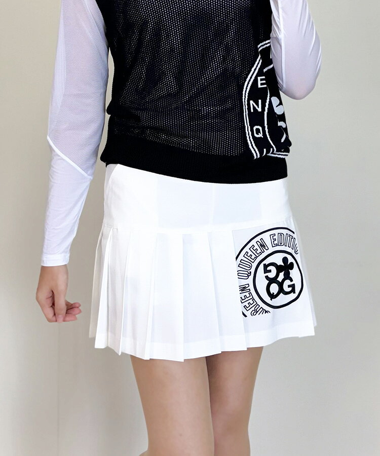 ゴルフウェア スカート レディース 韓国 プリーツ 夏 春 秋 プリーツスカート 涼しい 白 黒 春夏 切り替え シースルー ミニスカート アシンメトリー 刺繍 ロゴ おしゃれ ゴルフ女子 大人 ゴルフ スポーツ テニス