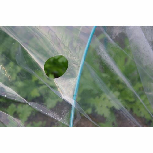 換気作業不要の透明の穴あきトンネル栽培用フィルム! ●穴があいているので、面倒な換気作業の手間を省きます。 ●太陽光線を吸収し、トンネル内の温度を高め、植物の成長を促進します。 ●夜間の冷気を遮り、霜の害を抑えます。 ●土壌水分の蒸発を抑えます。 ●雨による泥はねを防ぎ、病気の発生を抑えます。 ●穴の直径4.5cm。 ●厚み0.04mm、巾1.5m、長さ10m。 ●渡辺泰のぽかぽかシートをDCMでは販売しております。その他の農業・業務資材も多数取扱っております。 ●材質:ポリエチレン ●園芸用途以外には使用しないでください。 ●強い力をかけると、破れる恐れがあります。