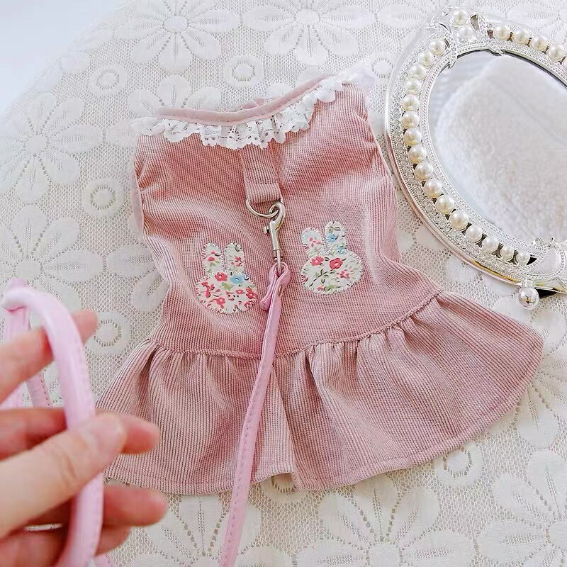 犬 服 犬服 犬の服 タンクトップ ワンピース フリル ドット猫服ハーネスリング付きうさぎ 二色袖なしドッグウェア【春 夏 春夏 夏服 おしゃれ 可愛い 女の子 トイプードル チワワ マルチーズ洋服】