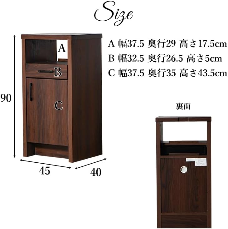 シンプルデザインのキャビネットはお部屋を選ばず電話台、FAX台として、さらにルーター収納やコンセントタップスペースがついて便利!【サイズ】幅45×奥行40×高さ90cm【素材】3Dシート(強化シート)【中国製】 【完成品】※取っ手の取り付けはお客様での作業になります。※当商品の配送は玄関までとなります。また、時間指定不可となっております。予めご了承ください。※出荷後のキャンセルやお届け先の変更は、往復送料や転送料をお客様に負担して頂く事になります。送料が高騰しておりますので十分にご注意下さいますようお願い致します。配達日を指定されて配達指定日にご不在の場合再配達料がかかりますのでご注意ください。※配送について※ 配達前に配送業者より連絡が入りますのでご対応をお願い致します。 大型の荷物になりますので、時間指定や夜間配達(18時以降)はできません。 商品発送から到着まで6?14日程でのお届けになります。地域により異なります。(離島等は別途見積)