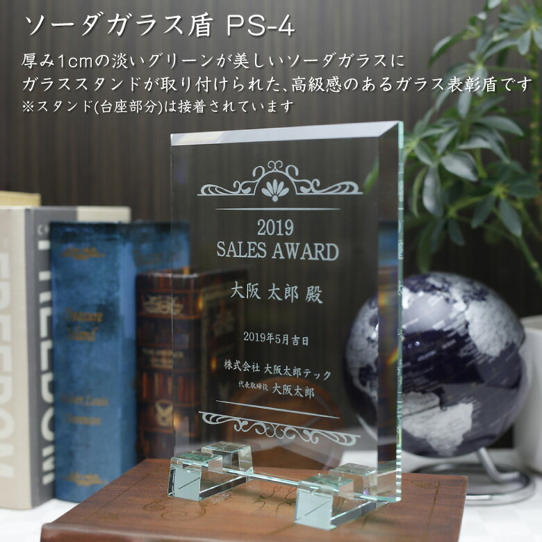 トロフィー ガラス 盾 PS-4 名入れ 記念品 表彰状 表彰 盾 表彰楯 卒業 感謝 退職記念 周年記念 創立記念 ゴルフコンペ ホールインワン スポーツ大会 イベント プレゼント ギフト
