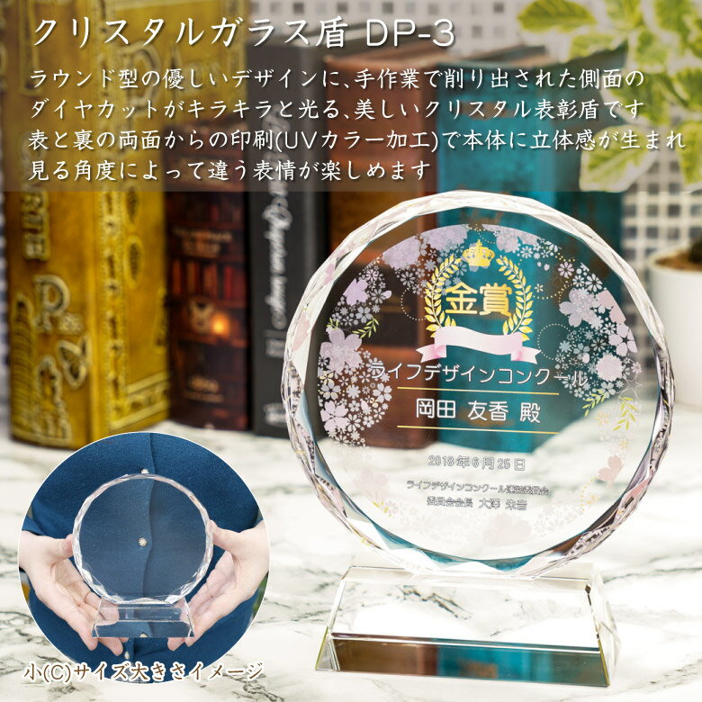 トロフィー クリスタル 盾 DP-3A(大) 名入れ 記念品 表彰状 表彰 盾 表彰楯 卒業 感謝 退職記念 周年記念 創立記念 ゴルフコンペ ホールインワン スポーツ大会 イベント 優勝 トロフィ プレゼント ギフト.